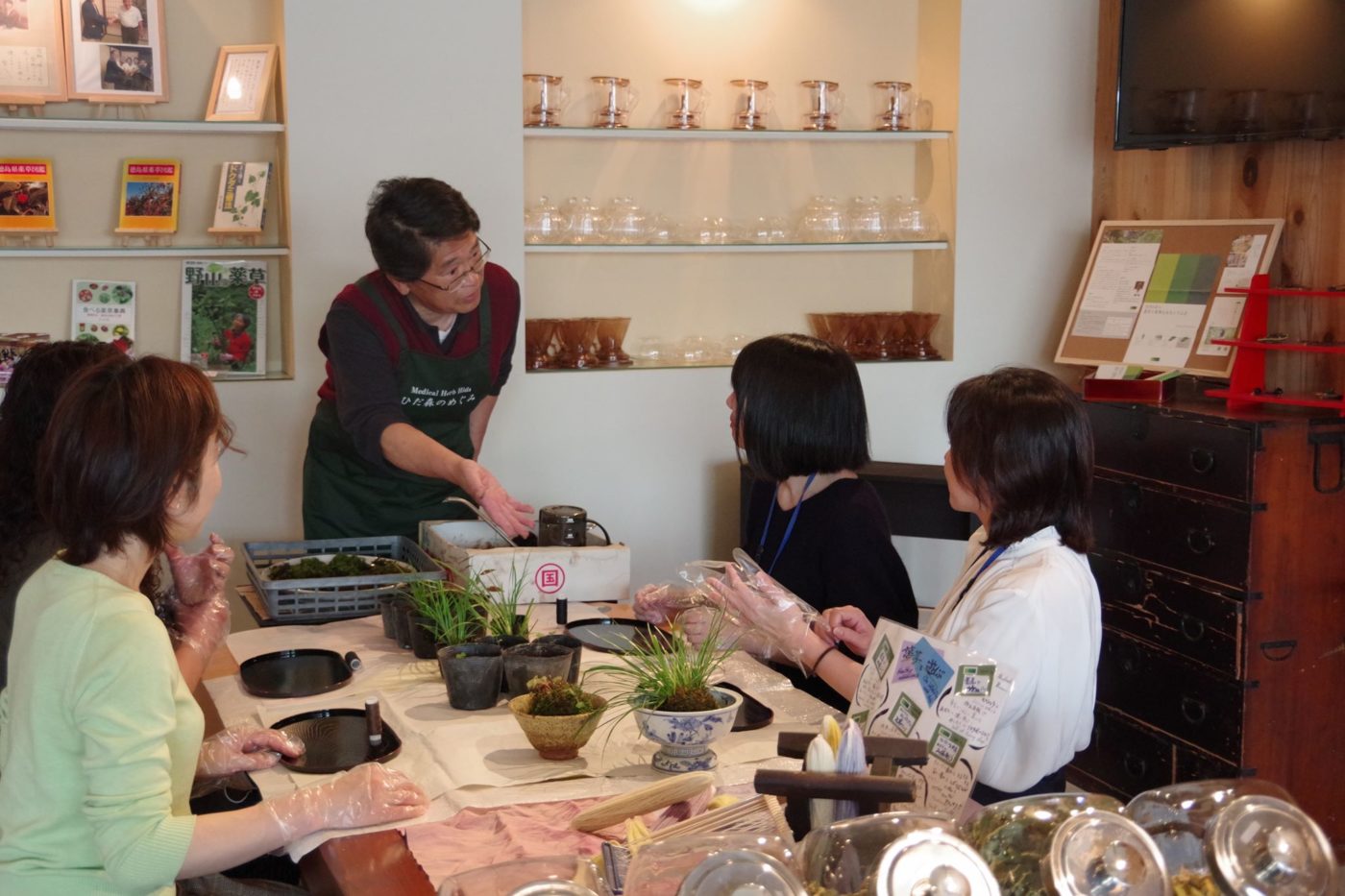 また、最近人気のコケ玉づくりや4種類の薬草で染めた優しい色のコースターづくり、効能を選びながら作れる薬草入浴剤などのクラフト系の体験も人気。