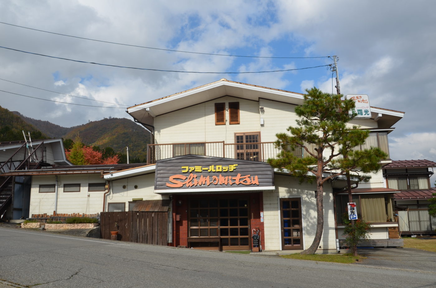 ファミールロッヂ霜光は国道から50メートル白壁に包まれた素敵な建物です。
